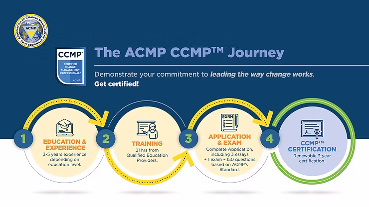 After you pass the final assessment, you’ll be awarded the Change Delivery Professional (CDP) Certification. You can then submit this as part of your supporting evidence when completing your CCMP™ application, along with your work experience and other required documents. For a clear overview of the next steps, follow this step-by-step CCMP™ application guide.